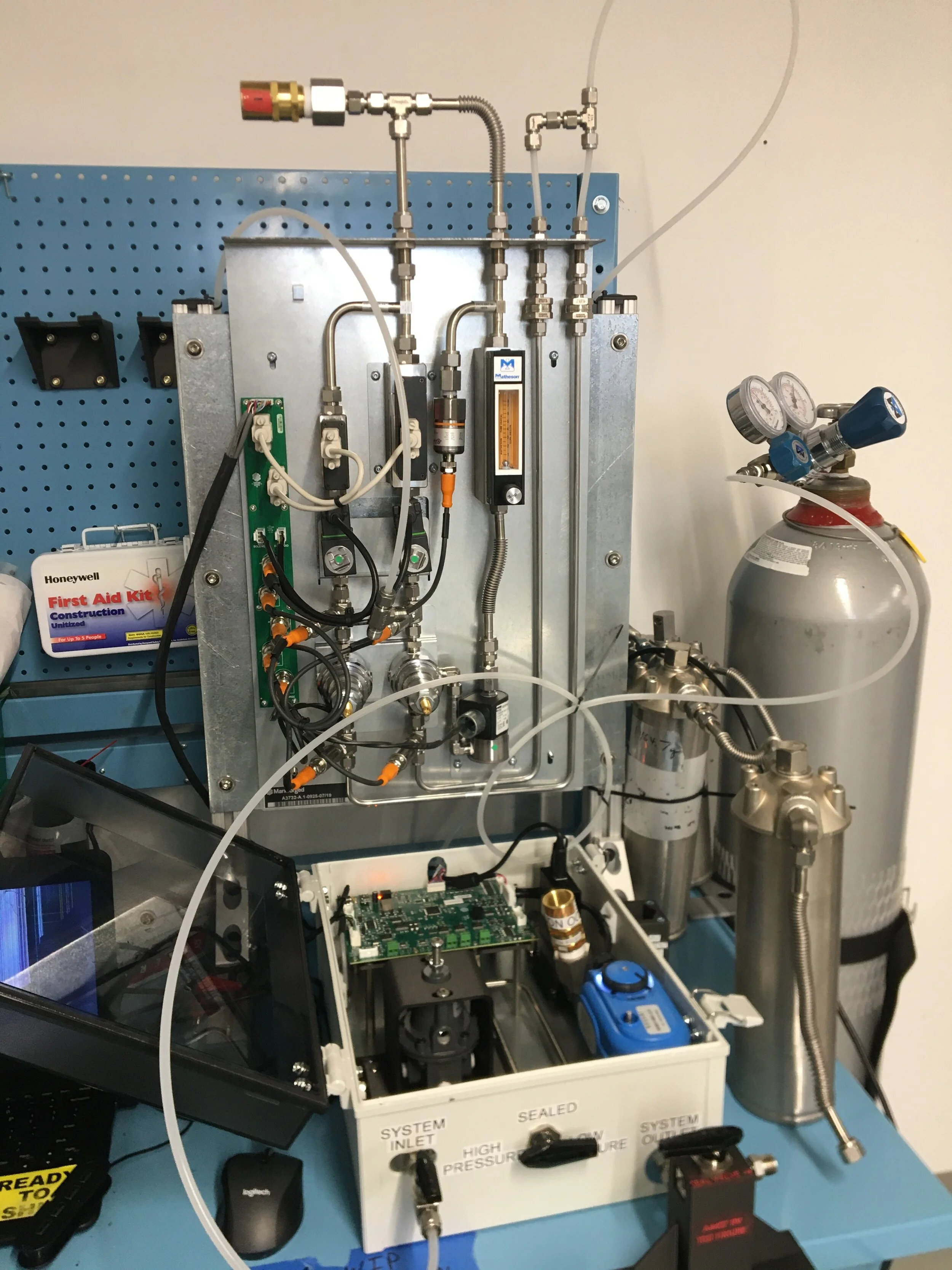 Many times I would be asked to validate relief valves for our products. I had no test equipment and had to install valves into existing machines - which was an invasive and time consuming process. I finally designed some hardware to mount a relief valve on another testing setup I made - the gas control panel test fixture. I then wrote a Python script to control the gas flow and monitor the pressure of the system. Based on the fixture setup upstream of the valve, the user could specify a pressure offset - which I calculated from test data that I collected. Once the relief valve opened to release pressure, the set-point was recorded and compared to our machine specifications. The script would then tell the user how many turns of the adjustment screw to make using an adjustment fixture that I designed and built. The procedure was implemented on our production line to make relief valve validation a breeze. This particular fixture was so satisfying to make because it made the validation process so easy that anyone could do it while completely freeing up my time that would’ve otherwise been used checking relief valves.